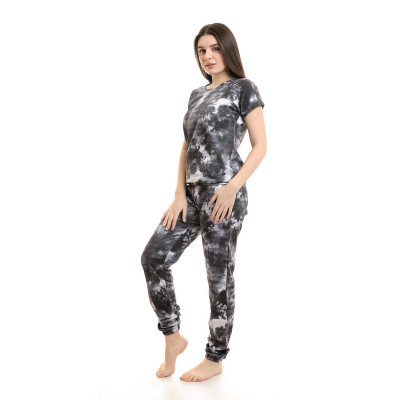 قاضى - بيجامة للنساء - بيجامة تحتوي علي تيشرت مطبوع بأكمام قصيرة - فتحة رقبه دائرية - بنطلون مطبوع - خصر مرن