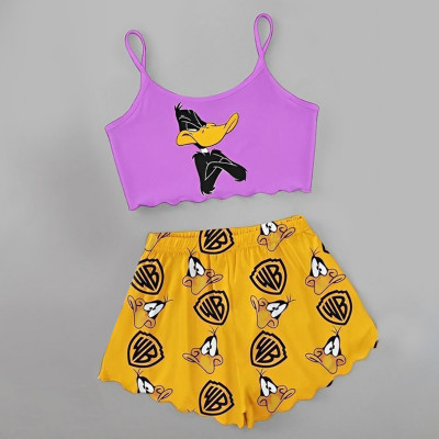 بجامة للنساء بدون اكمام - حمالة رفيعة - شورت قصير - مطبوعة - المقاس من M حتى L