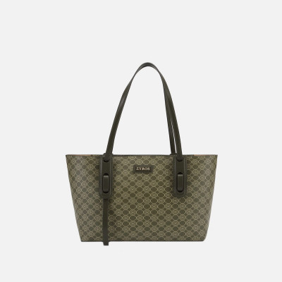 شنطة نسائيه من مجموعة شنط زايروس ، شنطة من الجلد المنقوش بشعار الماركة باللون الزيتي، شنطة بتصميم كلاسيك عصري لإطلاله كل يوم ، صممت الشنطة بحجم مناسب يكفي لكل إحتياجتك اليوميه، شنطة بيد مقوسه علويه من الجلد لسهوله حملها و لطله أكثر تفرد .