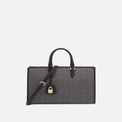 بتصميم عملي متفرد ، شنطة عمليه لكل يوم من الجلد المنقوش بأسم الماركه باللون الأسود ، تتميز الشنطه بحجمها الذي يناسب كل الأوقات او بالأخص اوقات العمل وأوقاتك الدراسيه لان حجمها يناسب جدا اطلالتك العمليه ، شنطه عمليه تناسب إطلالتك اليوميه بمقاس الطول= 33 سم - العرض= 13سم - الارتفاع= 34 سم ، تتميز الشنطه بيد مقوسه لحملها بكل سهوله و بحزام مرفق قابل للإزاله لإطلاله كاجول وأكثر جاذبيه .