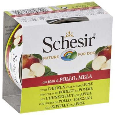 معلبات شيزر150جرام للكلاب البالغة بالدجاج مع قطع التفاح مكونات طبيعية 100 ٪ ، غنية بالبكتين وفيتامين ب والبيوفلافونويد لمحاربة الجذور الحرة و خالية من الألوان المضافة والمواد الحافظة