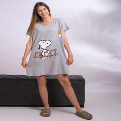 قميص للنوم للنساء يحتوي علي طباعة أمامية وفتحة رقبة دائرية