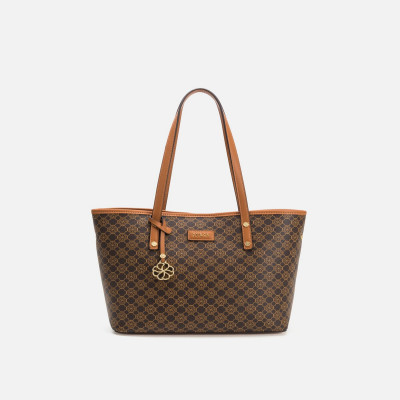A women's bag from the Zyros bag collection, a leather bag embossed with the brand's logo in brown, a bag with a modern classic design for an everyday look. The bag was designed in a suitable size enough for all your daily needs, a bag with a curved top handle for easy carrying for a more unique look.
