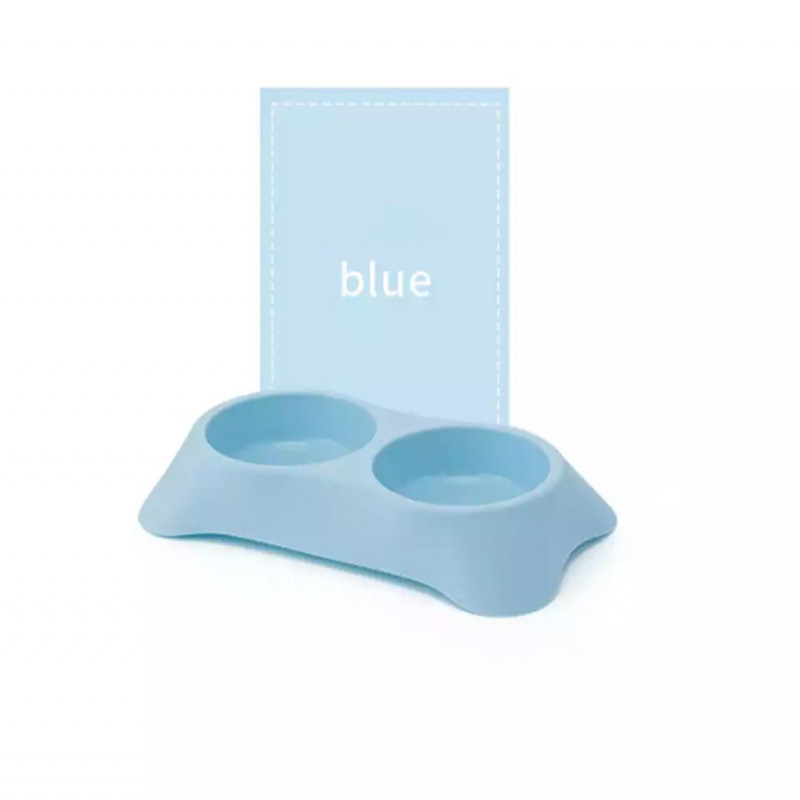 A double feeding bowl for your pet in a nice blue color, designed in a safe and attractive way in the form of two bowls, made of non-leaking plastic, suitable for dry or wet food, easy to clean, multi-use and allows for use for a very long time, lightweight and easy to transport.