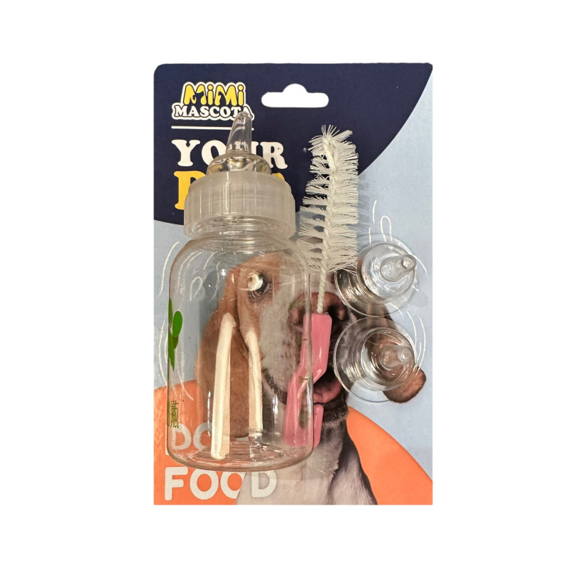 60ml/150ml Pet Feeding Bottle Set, Small Replacement Feeding Bottle for Small Dogs and Cats (60ml) Soft Silicone Material. It is bite-resistant, heat-resistant, flexible, non-collapsible, leak-proof and the bottle can be reused. The bottle is very soft, easy to squeeze and will not harm your pet's teeth. Two sizes - 60ml and 150ml. You can choose the size you need. There are 5 pacifiers for the 60ml bottle and 2 pacifiers for the 150ml bottle. Different types of pacifiers meet the needs of newborn pets and small animals at all stages. Scale mark. There are micro scales on the surface of the bottle, which can control food intake and prevent eating too much or too little, which is very convenient. With cleaning brush. The baby bottle is easy to clean. Pets need to clean the bottle in a timely manner after each feeding. Steps for use: 1. Please clean the pet bottle and bottle cap with warm water before use. 2. Use a needle to make a small hole on or draw a cross with a blade. 3. When the liquid flows out of the squeeze pet bottle, you can feed the animal