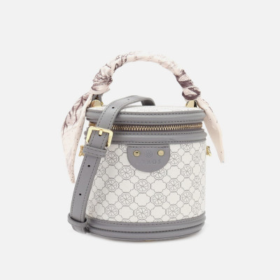 A women's bag from the Zyros bag collection, a soft leather bag embossed with the brand's logo in grey. The design of this bag is different from the usual. The bag is in a cylindrical geometric shape with elegant closing details. The bag is decorated with an elegant scarf that adds a feminine touch to your look. Attached to the bag is a belt that you can control its length. So that you can choose the right clothing for you and your look.