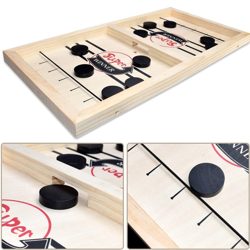 Family Winner Winner Winner Football Fast Hocky Sling Puck Game is suitable for adults and kids. Instructions: 2 player game, start the game and place five ice balls on each side of the board. Slide both ends of the lower band into the side slot to make it snap into place. Both players use an elastic band to launch the ice hockey through the door so that there is no ice hockey next to it. Players will not turn, they will just worship and shoot as soon as possible. Whoever clears the board first. Additional Game Changes For experienced players, Punisher is a game changer. Every time you play an ice hockey puck without going through the gate, you must pick up the ice hockey puck or stand to the side while reading “I Accept My Punishment.”