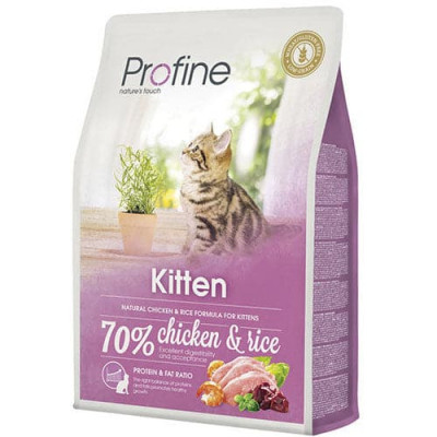 Profine Kitten for kittens Chicken dry food with chicken and rice High quality for kittens from 1 month to 12 months Protein and fat Balance in the proportions of fat and protein Promotes healthy growth Marine algae and probiotics to balance positive intestinal bacteria in the intestines and help boost immunity Marine formula rich in salmon oil And shrimp to promote healthy skin and coat