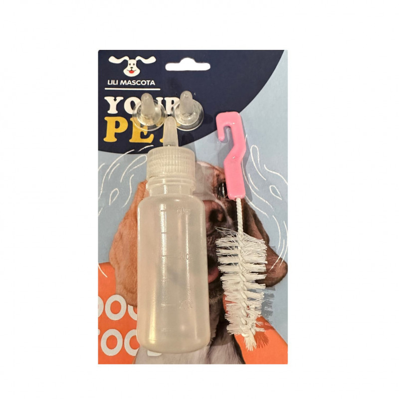 60ml/150ml Pet Feeding Bottle Set, Small Replacement Feeding Bottle for Small Dogs and Cats (60ml) Soft Silicone Material. It is bite-resistant, heat-resistant, flexible, non-collapsible, leak-proof and the bottle can be reused. The bottle is very soft, easy to squeeze and will not harm your pet's teeth. Two sizes - 60ml and 150ml. You can choose the size you need. There are 5 pacifiers for the 60ml bottle and 2 pacifiers for the 150ml bottle. Different types of pacifiers meet the needs of newborn pets and small animals at all stages. Scale mark. There are micro scales on the surface of the bottle, which can control food intake and prevent eating too much or too little, which is very convenient. With cleaning brush. The baby bottle is easy to clean. Pets need to clean the bottle in a timely manner after each feeding. Steps for use: 1. Please clean the pet bottle and bottle cap with warm water before use. 2. Use a needle to make a small hole on or draw a cross with a blade. 3. When the liquid flows out of the squeeze pet bottle, you can feed the animal