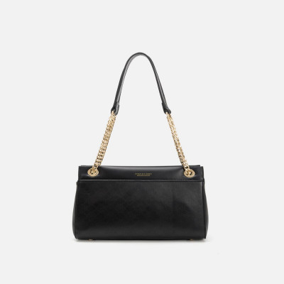 A leather bag embossed with the brand's logo in black, a bag with a practical design for a practical look for every day. The bag is designed in a suitable size enough for all your daily needs with a curved top handle made of metal with a wide chain design and made of leather. The bag features a zipper closure and an internal division into two parts to arrange your belongings in an orderly manner and for easy access to them. Bag size: length = 26 cm - width = 10 cm - height = 19 cm. Coordinate the bag with your daily look.