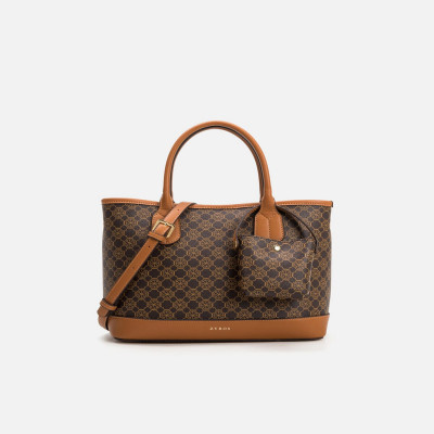 A women's handbag with a classic design from the collection of elegant Zyros bags, a brown leather bag with details engraved with the brand's logo. The bag features a curved handle and an attached wide belt so that you can wear the bag in the way that suits you. You can carry the bag in your hand for a classic look, and you can carry it in a cross-body fashion for a modern look.
