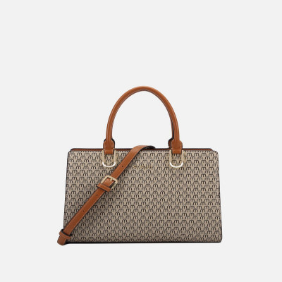 A brown embossed leather bag, a bag with a classic, modern design for an everyday look. The bag was designed in a suitable size enough for all your daily needs. Length = 26 cm - Width = 11.5 cm - Height = 19 cm. The bag has a curved top handle for easy carrying. A belt is attached to the bag. Long, you can wear it on the shoulder or as a crossbody for a more unique look.