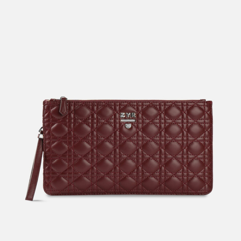 A women's bag from the Zyros brand with the design of a clutch handbag, a bag made of prominent leather with a geometric design in amber color and silver-colored details. The bag features a small handle so that you can hang the bag on your wrist and a zipper closure to ensure the preservation of your belongings. An elegant bag with a light, practical design that suits a daily look at all times. Pair the bag with jeans and a T-shirt for a casual look, or pair the bag with formal clothes for a casual look. Two years warranty from the date of receipt of the product.