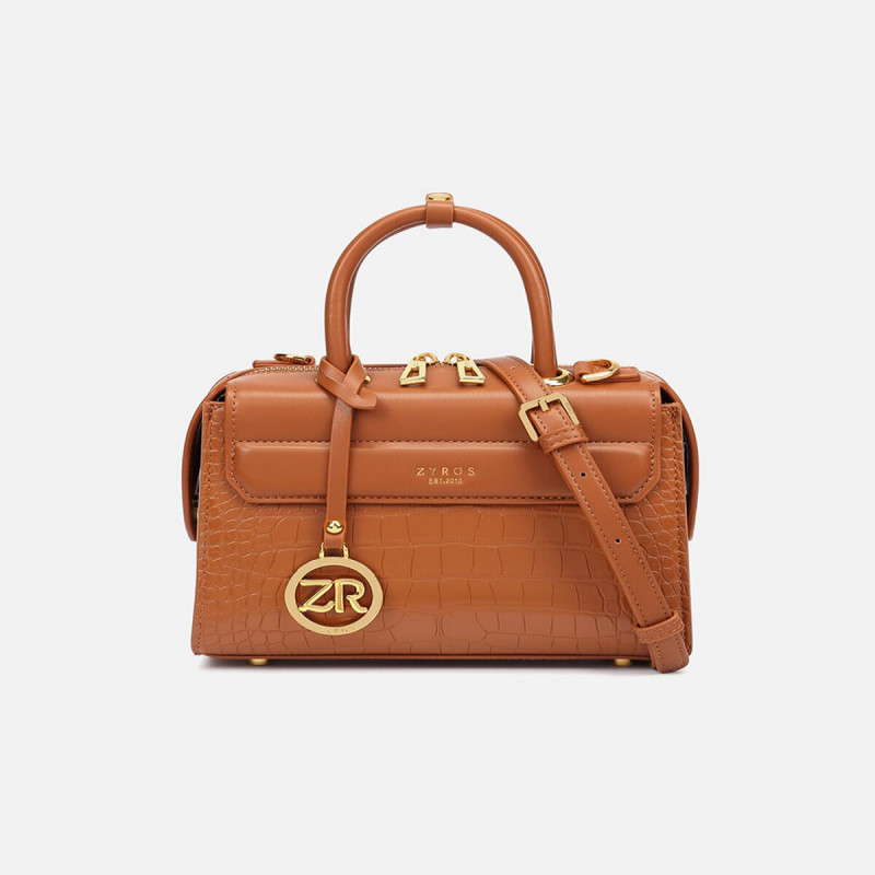 A women's bag from the Zyros brand, a leather bag with crocodile embossed leather and soft leather in brown, a bag with a modern design for an every day look. The bag is designed in a suitable size enough for all your daily needs with a curved top handle for easy carrying. The bag is accompanied by a long strap that you can wear on the shoulder or as a crossbody. I want a more unique look.. Two years warranty from the date of receipt of the product