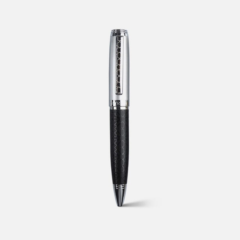 A men's pen from the Zyros brand, made of metal in silver and black with blue ballpoint ink. The pen features a design of engravings and geometric decorations that increase its attractiveness. A pen with a comfortable design for the hand in a way that it twists to open and close. You can coordinate the pen with a dress and your cuff in the same color for an eye-catching look. A men's pen from a collection Men's pens that are ideal for occasions and suit all tastes. Two years warranty from the date of receipt of the product